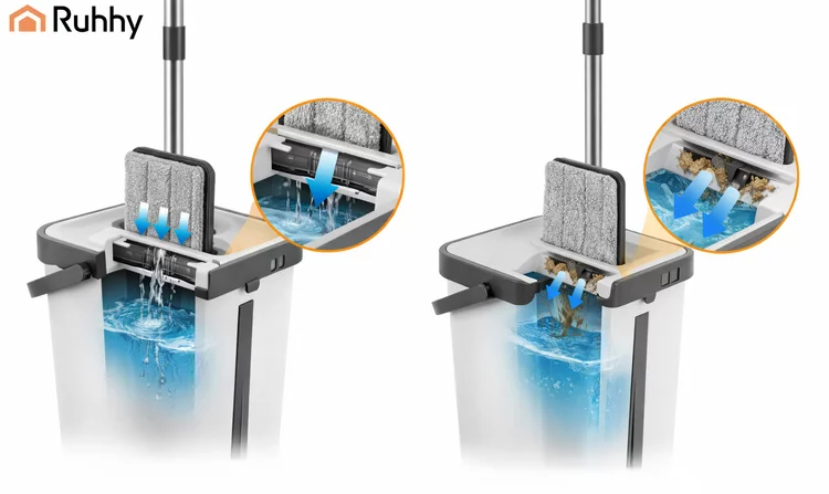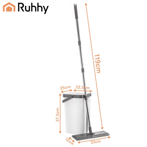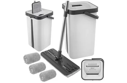 Nowoczesny płaski mop z wiadrem dwuizbowym zapewnia higieniczne i szybkie sprzątanie bez zbędnego wysiłku. Oddzielenie czystej i brudnej wody zapewnia idealnie czyste podłogi bez smug, podczas gdy wyciskanie bez użycia rąk chroni dłonie i pozwala precyzyjnie regulować wilgotność mopa. Idealne rozwiązanie do codziennego sprzątania mieszkań i domów, gdzie liczy się efektywność, komfort i czystość.