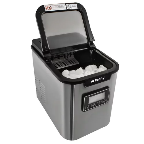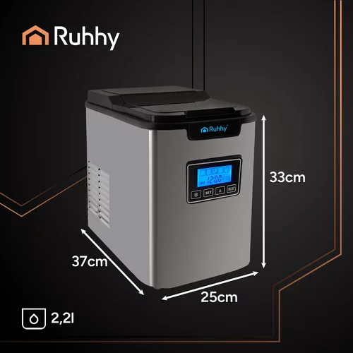 Ciesz się zimnymi napojami o każdej porze z tym wydajnym producentem kostek lodu, który produkuje do 12 kg lodu dziennie. Urządzenie umożliwia wybór rozmiaru kostek (S/M/L), wygodne programowanie czasu i automatyczne czyszczenie, co czyni je idealnym do użytku domowego, biur i imprez. Dzięki wyświetlaczowi LCD łatwo ustawisz wszystkie funkcje, a dzięki dźwiękowym powiadomieniom wiesz, kiedy należy uzupełnić wodę lub opróżnić pojemnik na lód.