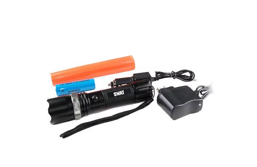 częścią zestawu jest latarka ładowana z ładowarką do zwykłego gniazda lub ładowarki samochodowej