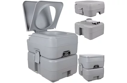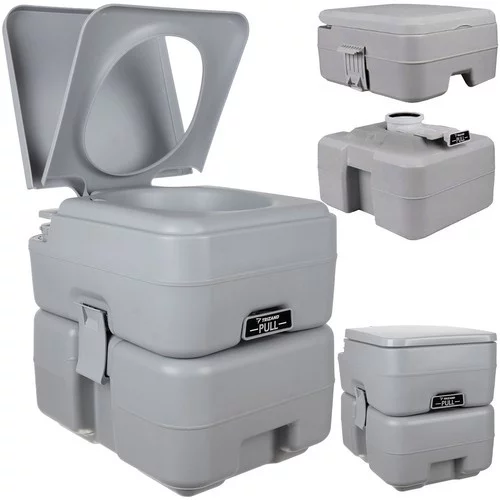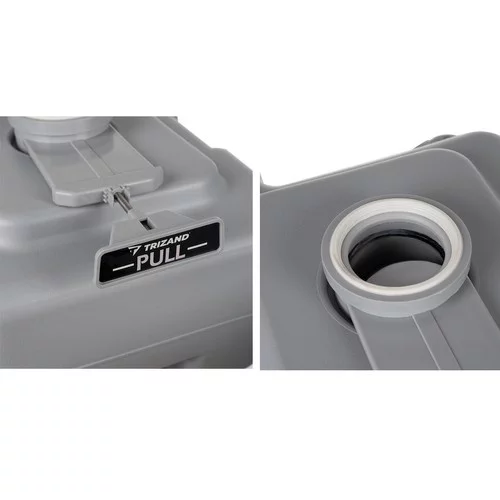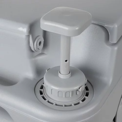 Praktyczne rozwiązanie dla sytuacji, w których nie ma dostępu do tradycyjnej toalety. Konstrukcja z dwoma oddzielnymi zbiornikami zapewnia wysoki poziom higieny, wygodne użytkowanie i łatwą konserwację. Górna część służy jako zbiornik na wodę o pojemności 12 l z mechanizmem spłukującym sterowanym ręczną pompą, który skutecznie odprowadza odpady do dolnego zbiornika. Dolna część oferuje zbiornik na odpady o pojemności 20 l, dzięki czemu toaletę można używać przez dłuższy czas bez konieczności częstego opróżniania.