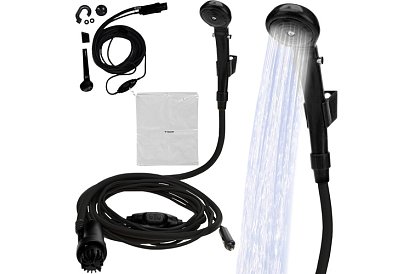 Przenośny prysznic turystyczny to praktyczne urządzenie dla turystów, podróżników i biwakowiczów, którzy chcą wygodnie umyć ciało i naczynia w miejscach bez tradycyjnego prysznica. Dzięki pompie o wysokim przepływie 3,5 l/min ustawisz strumień wody dokładnie według swoich potrzeb – prawie jak w domu. Prysznic jest łatwy do przenoszenia, szybko się instaluje, a dzięki filtrowi woda pozostaje czysta. W zestawie znajduje się uchwyt do zawieszenia, podwójny haczyk i torba, która służy jako zbiornik lub osłona.