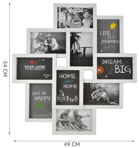 Ramka na zdjęcia to praktyczny sposób na wyeksponowanie do 10 zdjęć w jednym miejscu. Oryginalny efekt kolażu i elegancki biały kolor nadadzą wnętrzu styl i charakter, a jednocześnie zaoszczędzą miejsce w porównaniu do osobnych ram. Plastikowa konstrukcja zapewnia bezpieczeństwo nawet w domach z dziećmi lub zwierzętami domowymi.