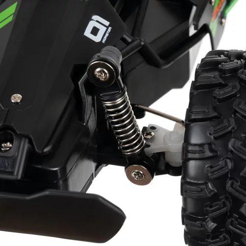 Auto RC oferuje ekstremalną zabawę dzięki wytrzymałej konstrukcji, w pełni amortyzowanemu podwoziu i dużym gumowym kołom. Pojazd radzi sobie z różnymi nawierzchniami – trawą, żwirem, asfaltem i lekkim piaskiem – a jego intuitywne sterowanie jest odpowiednie dla dzieci i początkujących. Auto dysponuje długim zasięgiem sterowania, wydajną baterią z możliwością wymiany i regulowaną geometrią kół dla maksymalnej stabilności. Replika w skali 1:18 zapewnia realistyczny wygląd i bezpieczeństwo zgodnie z europejskimi normami.
