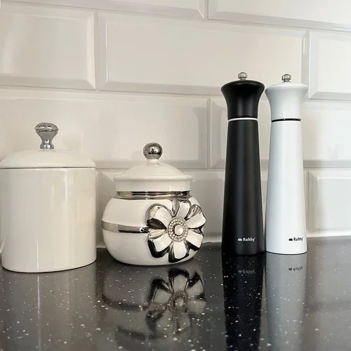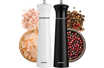 • Ręczne młynki do przypraw 2 sztuki - Czarno-białe