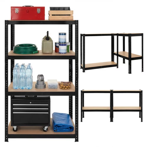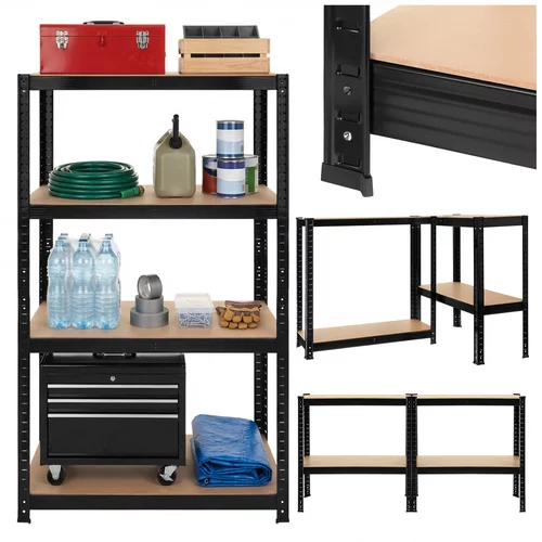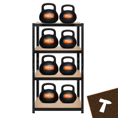 • Czarny metalowy regał magazynowy, 4 półki - 150x75x30 cm