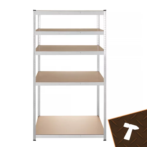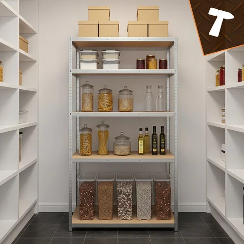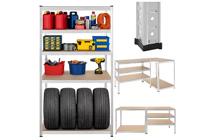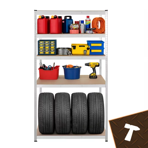 Stabilna i wytrzymała regał magazynowy zapewnia praktyczne rozwiązanie do przechowywania ciężkich i bardzo ciężkich przedmiotów w garażach, magazynach czy domowych piwnicach. Solidna stalowa konstrukcja z profilami o grubości 0,7 mm i wzmocnionymi półkami MDF zapewnia wysoką nośność i bezpieczne użytkowanie. Regulowana wysokość półek i system 3 w 1 umożliwiają maksymalną elastyczność przy przechowywaniu większych przedmiotów, opon lub narzędzi. Dzięki montażowi bezśrubowemu regał można szybko złożyć bez narzędzi i od razu zacząć używać.