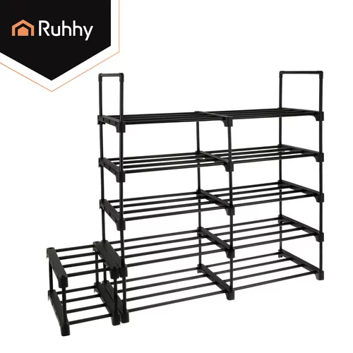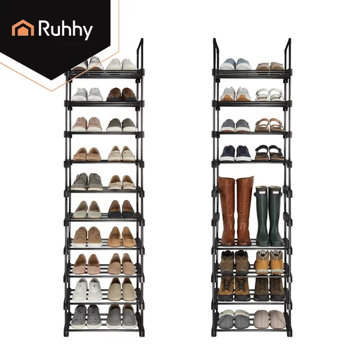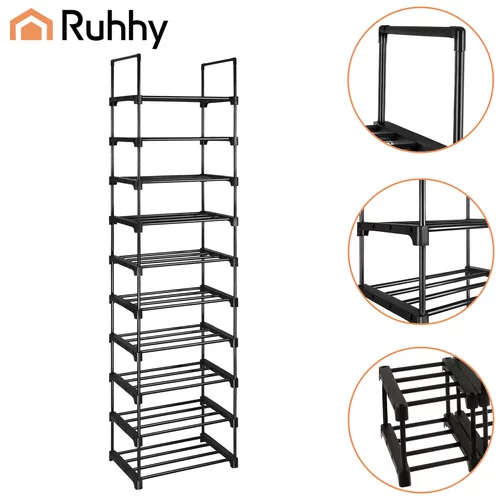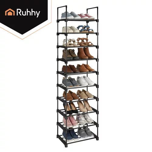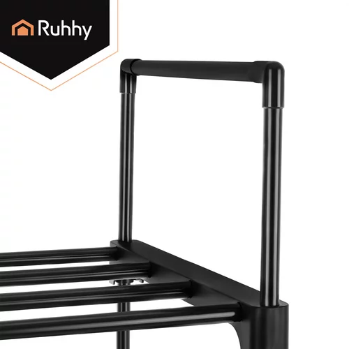 Funkcjonalny stojak na buty Ruhhy to praktyczne rozwiązanie do przechowywania obuwia w małych i większych przestrzeniach. Wąski i wysoki design pozwala na uporządkowanie do 20 par butów, nie zajmując zbędnego miejsca w przedpokoju, garderobie lub korytarzu. Solidna metalowa rama zapewnia stabilność i długą żywotność, podczas gdy otwarta konstrukcja wspiera cyrkulację powietrza i szybsze schnięcie obuwia. Nowoczesne czarne wykończenie wygląda elegancko i łatwo wpasowuje się w każdy wystrój wnętrza.