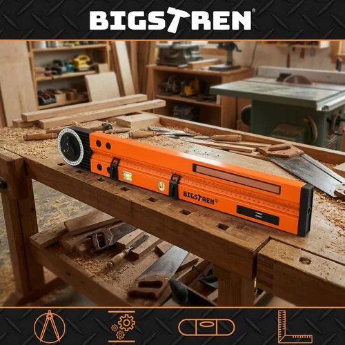 Kombinacja kątomierza, poziomicy w jednym narzędziu umożliwia precyzyjne pomiary i szybki transfer kątów podczas cięcia, montażu lub modyfikacji konstrukcji. Regulowane ramie z blokadą zapewnia stabilność, dwie libelle kontrolują pionową i poziomą pozycję, a linijka 500 mm umożliwia łatwe pomiary długości. Ułatwia rysowanie okręgów i łuków, dzięki czemu prace na budowie lub w warsztacie są efektywne i przejrzyste.