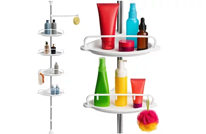 Praktyczna telescopowa półka prysznicowa wprowadza porządek, wygodę i nowoczesny styl do każdej łazienki. Regulowana wysokość od 240 do 310 cm umożliwia dostosowanie do każdej przestrzeni bez wiercenia. Cztery funkcjonalne półki, haczyki i wieszak zapewniają miejsce na kosmetyki, gąbki, ręczniki i inne akcesoria łazienkowe. Stylowe i funkcjonalne rozwiązanie, które ułatwia codzienną organizację łazienki.