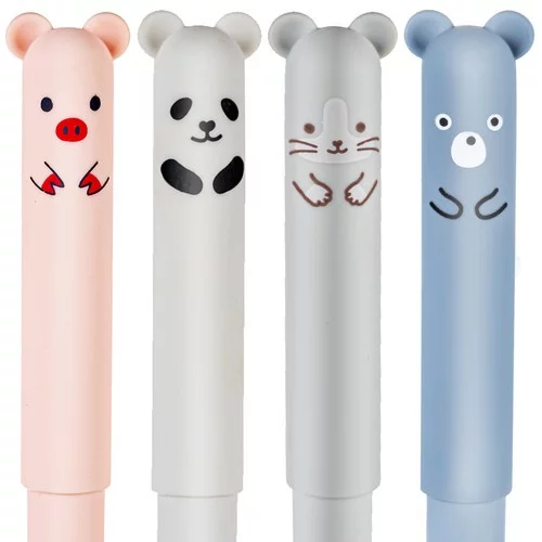 Ten zestaw zawiera cztery zmazywalne długopisy z motywami uroczych zwierzątek – prosiaczek, panda, mysz i miś. Idealne dla dzieci, które uczą się pisać w zabawny sposób i chcą łatwo poprawiać błędy. Niebieski wkład i precyzyjna końcówka umożliwiają wygodne i czyste pisanie, podczas gdy motywujący design zwierzątek wspiera zainteresowanie nauką. Zestaw jest idealny do szkoły i do użytku domowego.