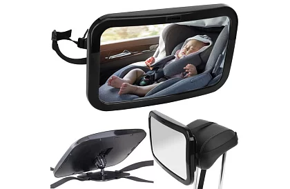 Praktyczne i bezpieczne lusterko wsteczne pozwala mieć ciągły podgląd dziecka w foteliku ustawionym tyłem do kierunku jazdy. Wypukły kształt zapewnia szeroki kąt obserwacji, dzięki czemu możesz kontrolować dziecko bez odwracania głowy. Wytrzymałe lusterko akrylowe jest bezpieczne i odporne na stłuczenie, więc nie musisz obawiać się urazów dziecka. Stabilne i regulowane pasy umożliwiają łatwy montaż na zagłówku i zapewniają pewne trzymanie podczas jazdy.