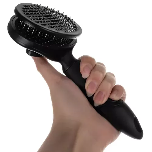 Zadbaj o gładką i zdrową sierść swojego pupila dzięki temu praktycznemu grzebieniowi do wyczesywania. Dzięki mechanizmowi samoczyszczącemu, złapane włosy łatwo usuniesz naciskając przycisk, bez konieczności ich wyrywania. Ergonomiczny uchwyt antypoślizgowy zapewnia wygodne użytkowanie, podczas gdy delikatne końcówki grzebienia masują skórę, wspierają blask sierści i uwalniają napięcie. Grzebień jest uniwersalny i odpowiedni dla wszystkich długości i typów sierści, idealny dla psów, kotów, królików i innych zwierząt domowych.