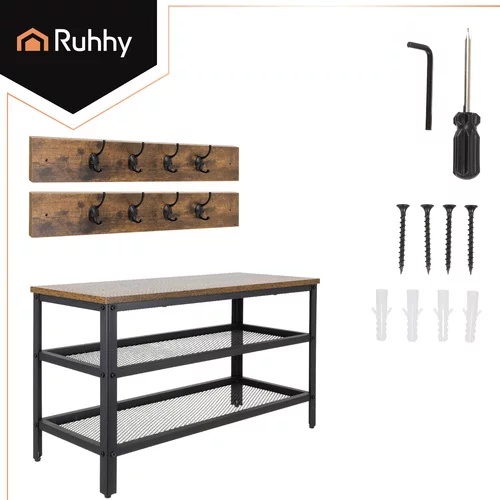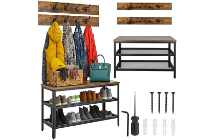 Praktyczne rozwiązanie dla porządku i oszczędności miejsca w przedpokoju. Oferuje przestronną szafkę na buty, wieszak na odzież i dwie półki w jednym designie, co pozwala mieć wszystko w zasięgu ręki. Stabilna konstrukcja z malowanej proszkowo stali i eleganckiej płyty MDF nadaje wnętrzu nowoczesny i przytulny wygląd, podczas gdy prosta montaż zapewnia szybkie i wygodne złożenie.