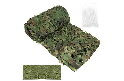 Leśna siatka maskująca zapewnia skuteczną osłonę, prywatność i ochronę mienia lub sprzętu w terenie. Odpowiednia do ogrodu, biwakowania, gier airsoftowych lub pracy w naturze, oferuje wytrzymałą, lekką i wodoodporną konstrukcję, którą można używać przez cały sezon w różnych warunkach atmosferycznych. W zestawie znajduje się 100 zacisków do szybkiego i łatwego montażu.