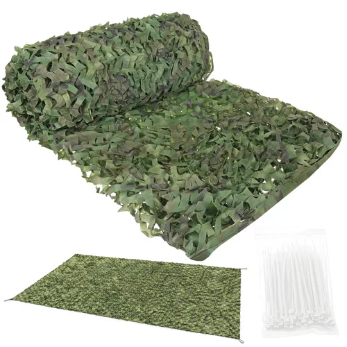 Praktyczna siatka maskująca z leśnym kamuflażem zapewnia skuteczną osłonę, prywatność i maskowanie w różnych warunkach zewnętrznych. Duża powierzchnia umożliwia zakrycie pergoli, płotu, pojazdu, namiotu lub wyposażenia podczas kempingu. Lekka konstrukcja i wodoodporny, szybko schnący materiał zapewniają wygodne użytkowanie przez cały sezon, niezależnie od pogody. Wzmocnione krawędzie umożliwiają łatwe mocowanie, a dołączone taśmy zaciskowe ułatwiają szybką instalację bez dodatkowych narzędzi.
