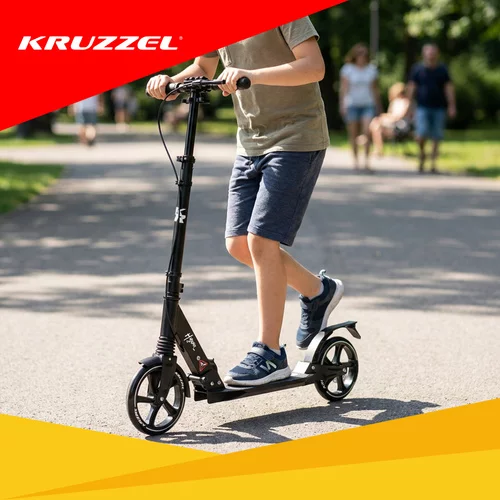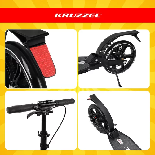 Składana hulajnoga oferuje stabilną i wygodną jazdę dla dzieci i dorosłych. Duże gumowe koła i wysokiej jakości łożyska ABEC-9 zapewniają płynny ruch, zmniejszony opór i łatwe pokonywanie nierówności. Podwójny system hamulcowy wraz z antypoślizgową powierzchnią zwiększa bezpieczeństwo, podczas gdy regulowana wysokość kierownicy umożliwia dostosowanie do różnych postaci. Lekka aluminiowa konstrukcja i szybki mechanizm składania ułatwiają transport i przechowywanie, co jest idealne do codziennego użytku w mieście.