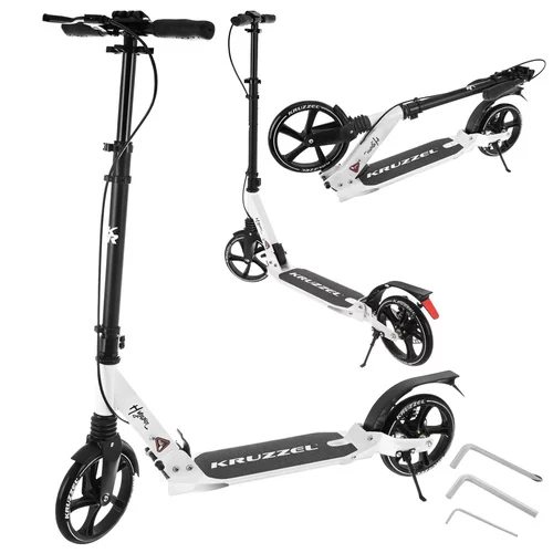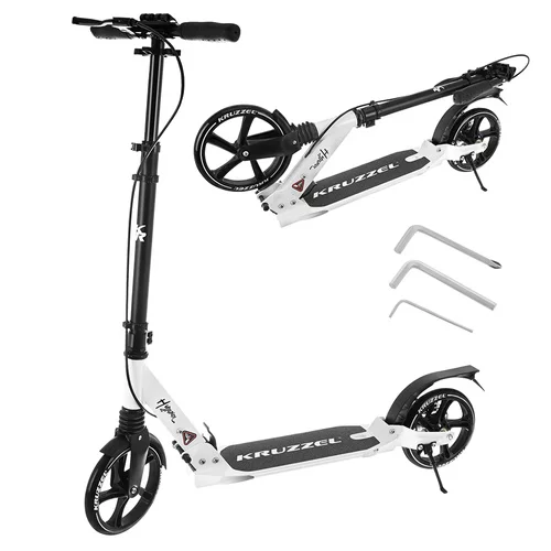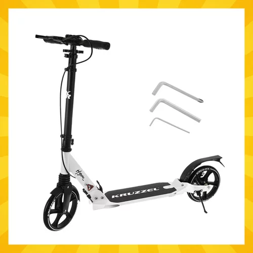 Duża miejska hulajnoga premium, odpowiednia dla dzieci i dorosłych. Dzięki 20 cm gumowym kołom, zawieszeniu i łożyskom ABEC-9 oferuje płynną i stabilną jazdę nawet na nierównym podłożu. Lekka aluminiowa konstrukcja, szybkie składanie i regulowana kierownica czynią ją idealnym środkiem transportu do miasta i na czas wolny.