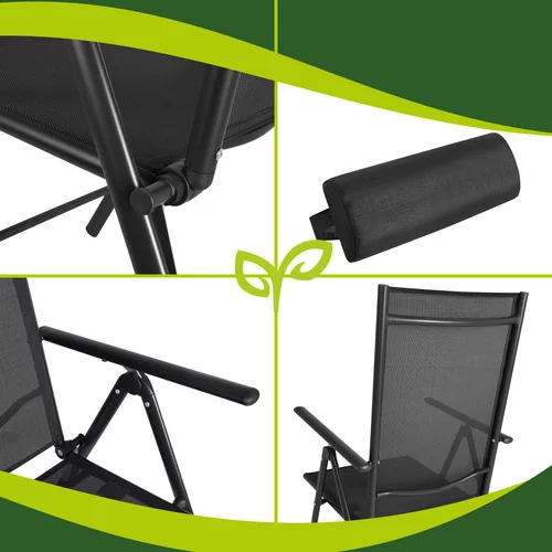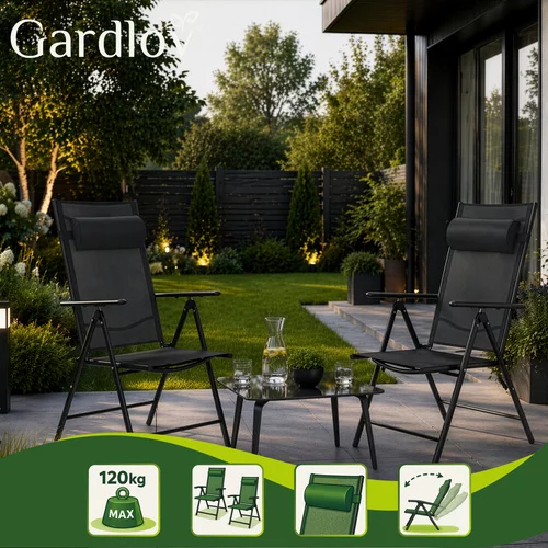 Praktyczny zestaw składanych krzeseł ogrodowych to idealny wybór do wygodnego wypoczynku na tarasie, balkonie, w ogrodzie oraz podczas kempingu. Dzięki regulowanemu oparciu, wygodnym podłokietnikom i miękkiej poduszce na głowę łatwo ustawisz idealną pozycję do relaksu. Solidna konstrukcja zapewnia stabilność podczas siedzenia, a składana forma umożliwia łatwe przechowywanie poza sezonem lub szybkie przenoszenie w razie potrzeby.