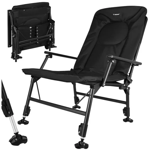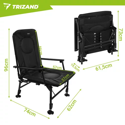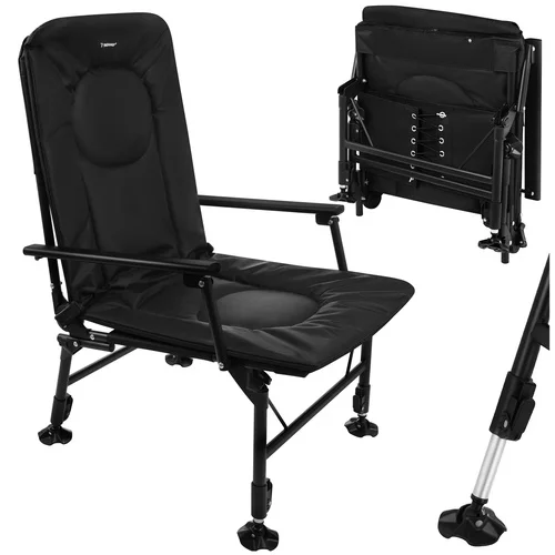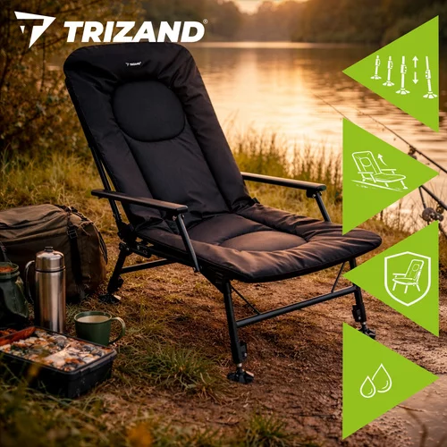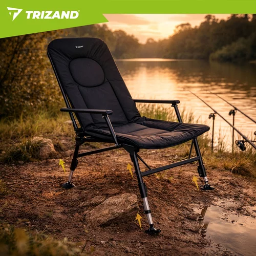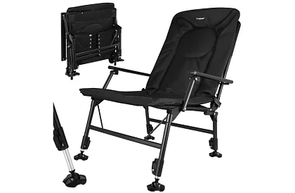Wygodne krzesło wędkarskie zostało zaprojektowane na długie godziny nad wodą, podczas biwakowania i odpoczynku na łonie natury. Dzięki regulowanemu oparciu, miękkiemu, wyściełanemu siedzisku i solidnym podłokietnikom oferuje wysoki komfort podczas siedzenia. Stabilna konstrukcja z regulowanymi nogami umożliwia bezpieczne użytkowanie nawet na nierównym terenie. Składana konstrukcja dodatkowo ułatwia transport i przechowywanie.