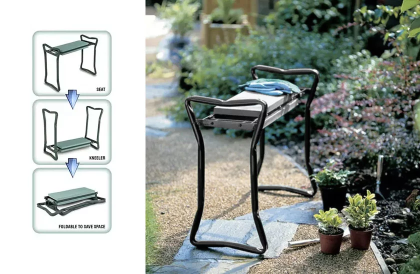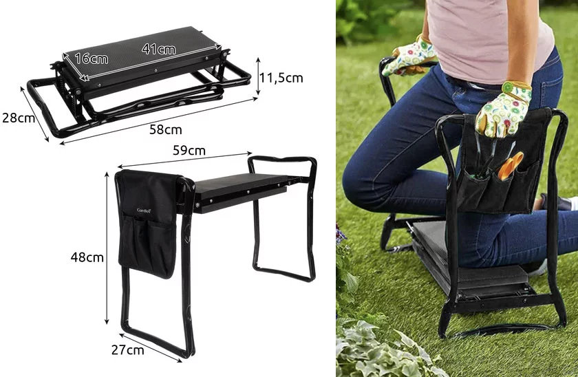Ułatw sobie pracę w ogrodzie i zadbaj o komfort. Ten sprytny pomocnik to idealne rozwiązanie dla każdego ogrodnika – pasjonata, seniora czy doświadczonego działkowicza. Koniec z bolącymi kolanami i plecami! Dzięki inteligentnemu designowi, klęcznik można w mgnieniu oka zmienić w wygodną ławkę. Miękka pianka EVA chroni kolana podczas pracy przy grządkach i zapewnia wygodę nawet przy dłuższym siedzeniu. Po pracy możesz wygodnie usiąść i odpocząć.