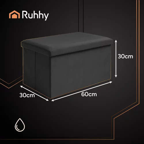 Pufa RUHHY jest praktyczna i stylowa ozdoba do każdego wnętrza. Tapicerowana wodoodpornym aksamitem z wzmocnieniem z MDF zapewnia miękkie siedzisko i przestronną przechowalnię o pojemności 54 litrów, idealną na zabawki, koce lub drobiazgi. Dzięki składanej konstrukcji, solidnej budowie i nośności do 80 kg łączy funkcjonalność z eleganckim wyglądem, odpowiednia do salonu, sypialni lub korytarza.