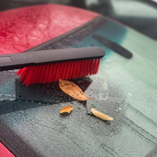 • Miękkie włosie szczotki: delikatne dla lakieru, skutecznie usuwają śnieg bez zarysowań