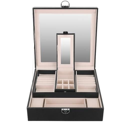 Praktyczne lustro – wewnątrz szkatułki znajduje się składane lustro, które ułatwia zakładanie biżuterii i nakładanie makijażu. Pod lustrem znajduje się mała przegródka na twoje najcenniejsze biżuterię.