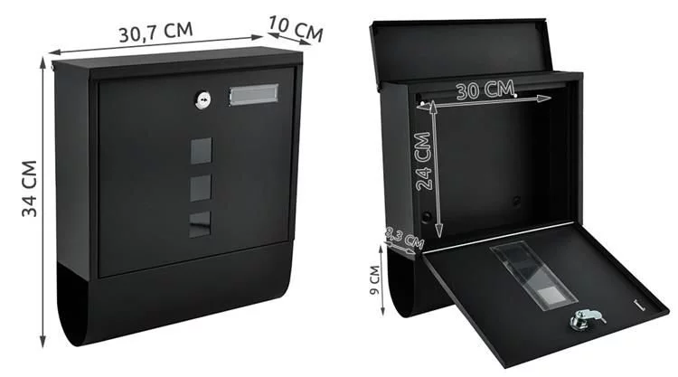 Skrzynka pocztowa jest wykonana z blachy ocynkowanej, więc nie rdzewieje i wytrzymuje wiele sezonów. Jest wyposażona w pokrywę, która chroni korespondencję przed warunkami atmosferycznymi, oraz w tubę na gazety i ulotki. Zestaw zawiera kołki montażowe i podkładki do łatwego mocowania na ścianie oraz dwa klucze do bezpiecznego zamykania.