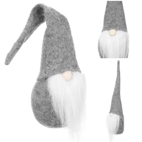 Uroczy świąteczny skrzat z brodą, który doda wnętrzu ciepłą i świąteczną atmosferę. Mały pomocnik ucieszy dzieci i dorosłych oraz pięknie uzupełni świąteczne dekoracje w domu, biurze i na działce.