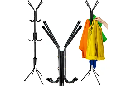 Eleganckie i praktyczne rozwiązanie do przechowywania odzieży w każdym wnętrzu. Stabilna konstrukcja z trzema poziomami zawieszenia umożliwia wygodne odkładanie płaszczy, kurtek, szali i toreb bez konieczności wiercenia w ścianie. Wolnostojąca konstrukcja zapewnia łatwe przenoszenie, a kompaktowy design pasuje również do mniejszych przestrzeni, gdzie pomaga utrzymać porządek i styl jednocześnie.