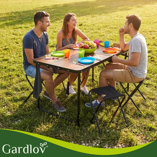 Z wygodnym zestawem kempingowym możesz cieszyć się jedzeniem i relaksem na świeżym powietrzu bez zmartwień. Zestaw można złożyć do praktycznej walizki, co ułatwia transport i przechowywanie. Lekka, stabilna konstrukcja umożliwia łatwe przenoszenie i bezpieczne użytkowanie na różnych powierzchniach. Regulowana wysokość stołu i 4 składane krzesła zapewniają komfort dla całej rodziny lub grupy przyjaciół.