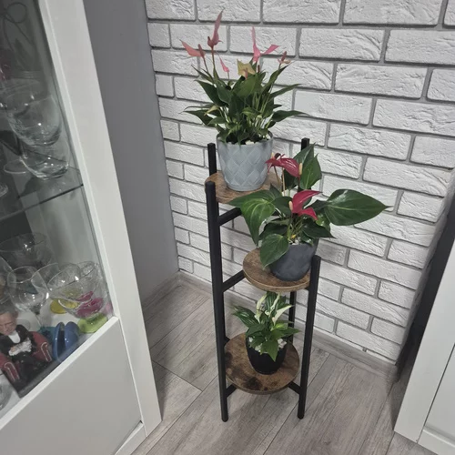 Metalowy stojak na kwiaty w stylu loft oferuje nowoczesne rozwiązanie dla roślin i doniczek w salonie, biurze, ogrodzie, na balkonie lub w holu. Solidna konstrukcja z metalu i MDF zapewnia stabilność nawet przy pełnym obciążeniu, a regulowane nóżki chronią podłogę przed zarysowaniami. Geometryczny loftowy design wpasuje się w różne wnętrza, a trzy poziomy umożliwiają efektywne wyeksponowanie roślin, tworząc atrakcyjną przestrzenną kaskadę. Montaż jest prosty dzięki kompletnemu zestawowi akcesoriów i instrukcji obrazkowej.
