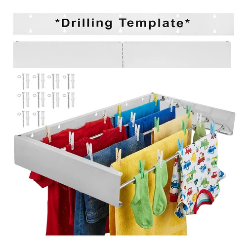 Praktyczny ścienny suszarka do prania zapewnia wygodne suszenie bez zbędnego zajmowania miejsca w pomieszczeniu. Dzięki składanej konstrukcji można suszarkę po użyciu łatwo złożyć do ściany, więc nie przeszkadza i oszczędza miejsce. Doskonale nadaje się do mniejszych mieszkań, łazienek, balkonów, pomieszczeń technicznych lub pralni. Solidne wykonanie i wysokiej jakości materiały zapewniają długą żywotność, stabilność i niezawodne użytkowanie podczas codziennego suszenia prania.
