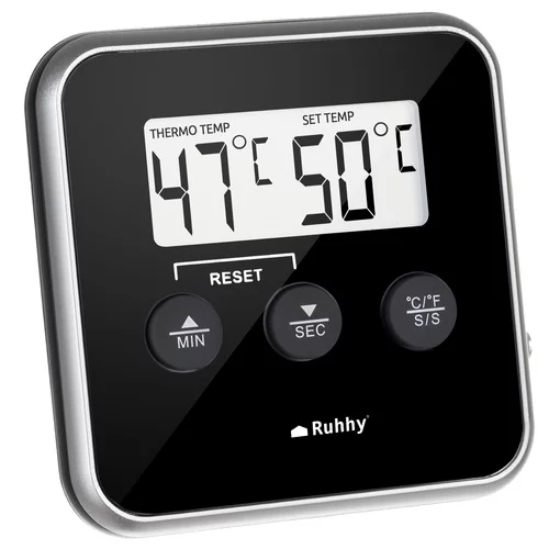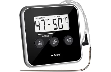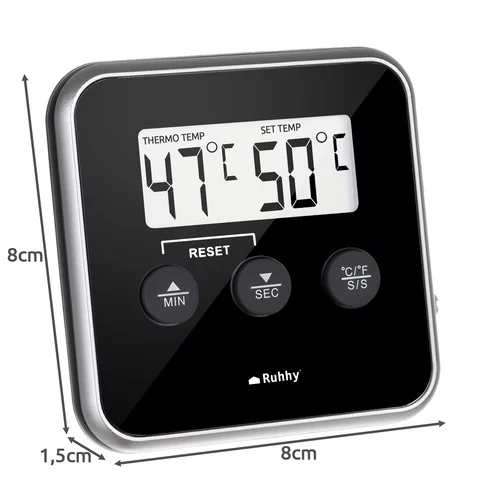 Ten termometr jest idealnym pomocnikiem przy przygotowywaniu mięsa, płynów lub olejów i pozwoli Ci łatwo kontrolować temperaturę z dokładnością do jednego stopnia. Duży i czytelny wyświetlacz LCD zapewnia łatwe odczyty wartości, podczas gdy magnes z tyłu umożliwia przymocowanie termometru do metalowych powierzchni, takich jak lodówka, piekarnik lub grill. Funkcja alarmu dźwiękowego powiadomi Cię, gdy temperatura osiągnie ustawioną wartość, a praktyczny timer ułatwi dokładne śledzenie czasu gotowania.