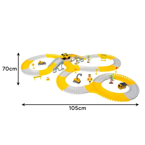 Zbuduj własne plac budowy i rozwijaj wyobraźnię dziecka. Zestaw zawiera 255 elementów, w tym tor i pojazdy budowlane, dzięki którym mały inżynier znajdzie się w świecie realistycznej budowy. Zestaw wspiera motorykę małą, myślenie logiczne i kreatywność i zapewnia godziny wciągającej zabawy. Możliwość rozszerzenia toru poprzez zakup dodatkowego zestawu.