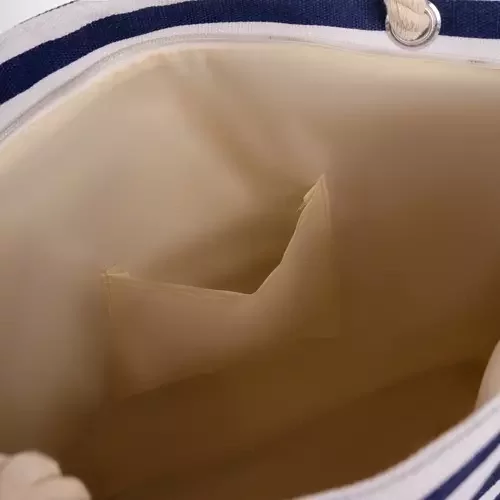 Stylowa i praktyczna torba w marynarskim designie jest idealna na plażę, piknik lub do miasta. Dzięki wysokiej jakości, trwałemu i łatwemu do czyszczenia materiałowi chroni twoje rzeczy przed wilgocią i uszkodzeniami. Z przestronnym wnętrzem i dodatkową kieszenią na cenne przedmioty masz wszystkie potrzebne rzeczy pod ręką.
