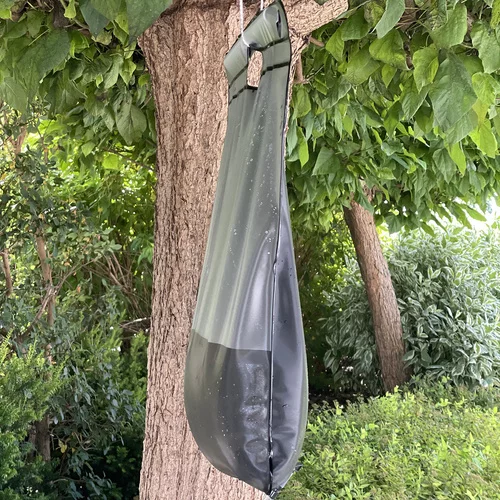 Montaż jest prosty i szybki bez potrzeby specjalistycznych narzędzi. Prysznic jest przenośny i można go zawiesić na szynie, gałęzi lub innym odpowiednim punkcie podparcia.