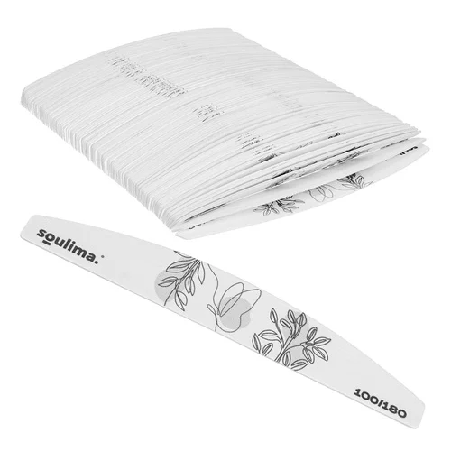 Zestaw 100 pilników do paznokci Soulima 100/180 to praktyczne i korzystne rozwiązanie dla profesjonalnej i domowej manicure. Dzięki uniwersalnej grubości i wysokiej jakości wykonania, pilniki nadają się do obróbki naturalnych i sztucznych paznokci. Duże opakowanie 100 sztuk zapewnia długoterminowy zapas i wygodne użytkowanie w domu oraz w salonie kosmetycznym.
