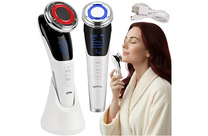 Urządzenie masujące 5 w 1 zapewnia kompleksową pielęgnację skóry w domu. Łączy mezoterapię bezigłową, mikroprądy EMS, terapię światłem LED oraz funkcję ciepła i zimna, co łagodzi, nawilża i napina skórę bez bólu czy podrażnień. Urządzenie dostosowuje się do wszystkich typów skóry, poprawia wchłanianie kosmetyków i pomaga zamknąć pory, zmniejszyć obrzęki oraz regenerować zmęczoną lub dojrzałą skórę.