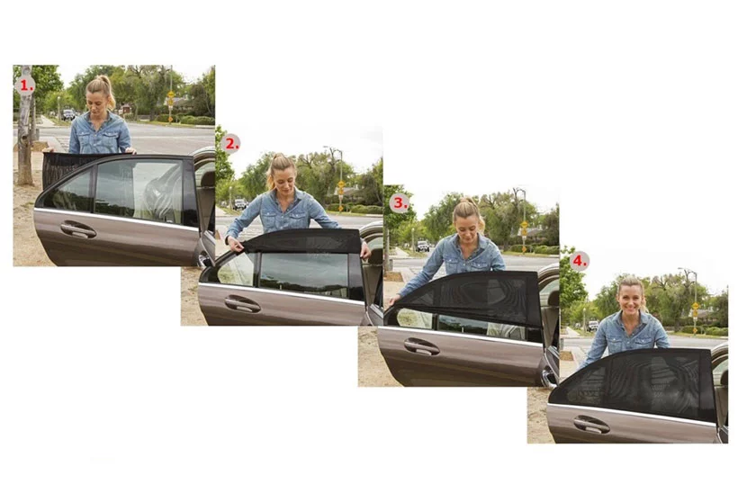 Osłony przeciwsłoneczne są uniwersalne, elastyczne i rozszerzalne, dzięki czemu nadają się do wszystkich typów samochodów. Łatwa instalacja w kilka sekund. 100% pokrycie tylnych bocznych szyb zapewnia maksymalne zacienienie dla Ciebie i Twojej rodziny przy jednoczesnym obniżeniu temperatury w samochodzie.