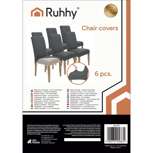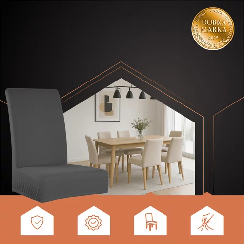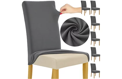 Pokrowce RUHHY łączą elegancję, komfort i ochronę krzeseł. Wykonane z miękkiego poliestru i elastycznego spandeksu, idealnie przylegają do każdego krzesła i chronią je przed zanieczyszczeniami i uszkodzeniami. Ciemnoszary kolor pasuje do różnych stylów wnętrzarskich, a uniwersalny rozmiar 65 × 40 × 35 cm pasuje do większości standardowych krzeseł.