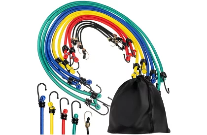 Praktyczny zestaw gum mocujących z metalowymi hakami umożliwia szybkie i bezpieczne zabezpieczenie ładunku w domu i w podróży. Różne długości gum zapewniają elastyczność przy mocowaniu, wysoka elastyczność gwarantuje wielokrotne użycie bez utraty właściwości, a kompaktowe etui utrzyma wszystko w porządku.