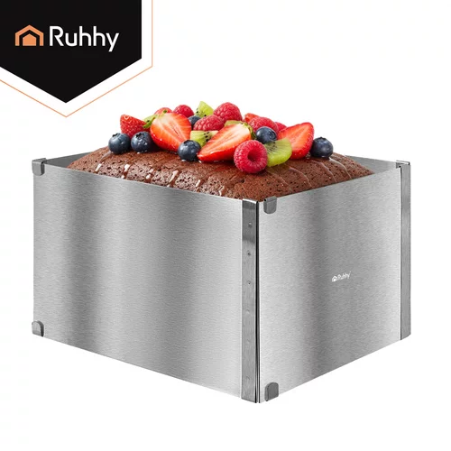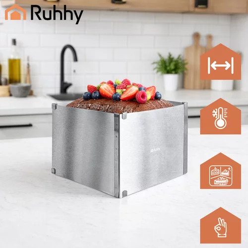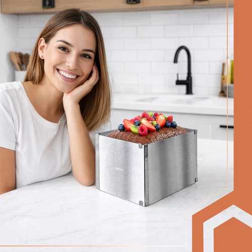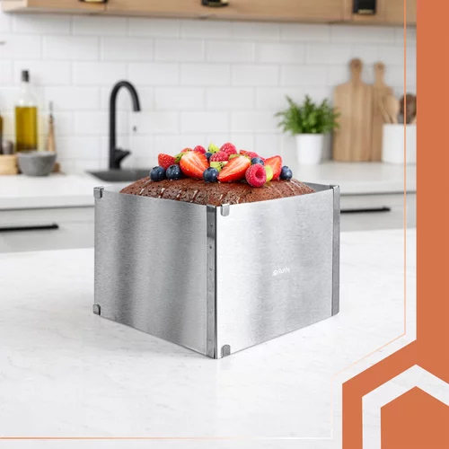 Praktyczna forma cukiernicza umożliwia łatwe przygotowanie ciast, biszkoptów i warstwowych deserów w różnych rozmiarach. Dzięki płynnej regulacji w zakresie 20–38 × 24–45 cm dostosowuje się do konkretnego przepisu i wymaganego liczby porcji. Wysokość 15 cm jest idealna do wysokich i wielopiętrowych deserów. Solidna konstrukcja z stali nierdzewnej zapewnia stabilność podczas pieczenia i chłodzenia oraz pomaga utrzymać doskonały kształt gotowego deseru.