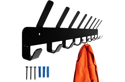 Praktyczny i solidny wieszak ścienny oferuje wystarczająco dużo miejsca na zawieszenie kurtek, płaszczy, toreb i akcesoriów. Dzięki 17 haczykom uporządkuje odzież całej rodziny i utrzyma porządek w przedpokoju, korytarzu lub przy wejściu do domu. Nowoczesny czarny design pasuje do każdego wnętrza i na zewnątrz, a odporna konstrukcja zapewnia długą żywotność.