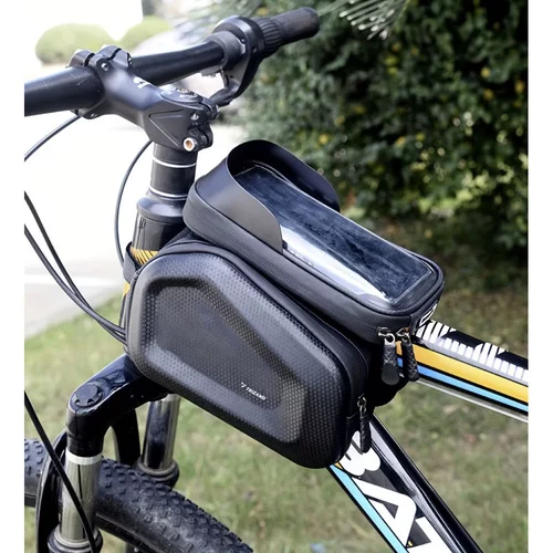Uniwersalna torba na rower z mocnym rzepem utrzyma telefon bezpiecznie na miejscu nawet na wyboistych drogach. Osłona przeciwsłoneczna zapewnia dobrą widoczność ekranu w słoneczne dni, co ułatwia korzystanie z nawigacji i innych funkcji podczas jazdy.