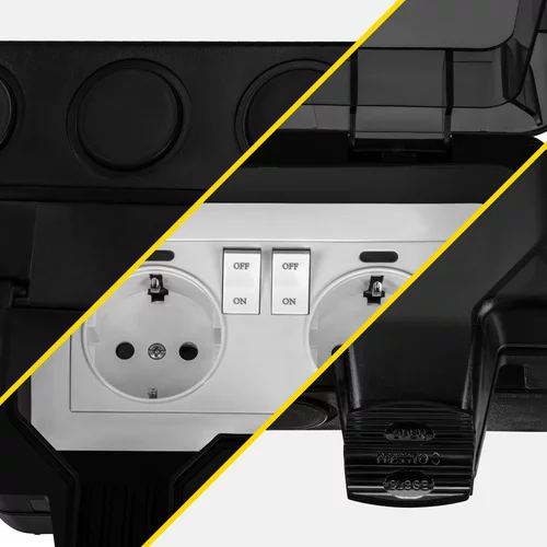 Solidna konstrukcja chroni gniazdo przed wodą, kurzem i niekorzystnymi warunkami do bezpiecznego codziennego użytkowania.