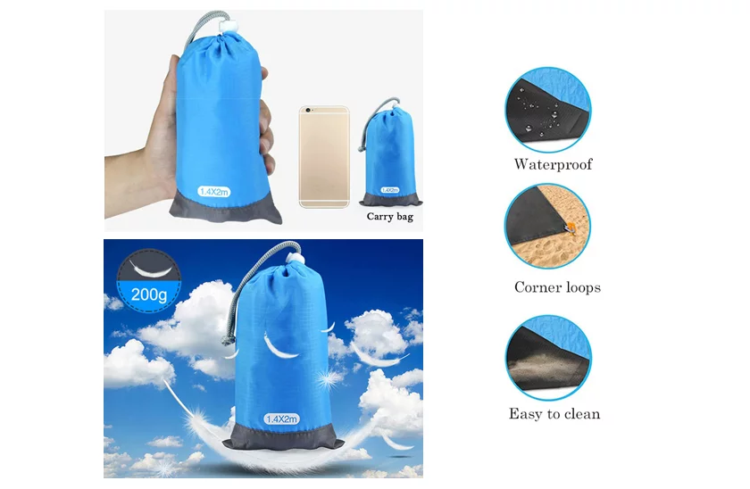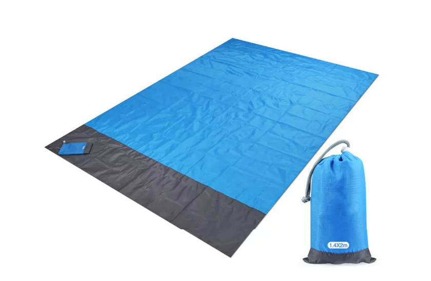 Zajmuje powierzchnię 210×200 cm, co wystarcza na wiele aktywności na świeżym powietrzu. Mata plażowa wykonana jest z wytrzymałego nylonu, który jest materiałem wodoodpornym. Zapewnia komfort użytkowania i posiada doskonałe właściwości do stosowania na różnych powierzchniach i warunkach atmosferycznych. W opakowaniu znajdują się pomoce mocujące, dzięki którym podkładka nie przesuwa się i będzie stabilna.