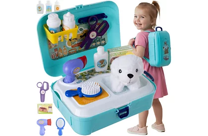 Zabawka oferuje zabawę, kreatywność i naukę odpowiedzialności. Dzieci uczą się dbać o pluszowego pupila, czesać, kąpać i obcinać pazurki, rozwijając jednocześnie motorykę małą, empatię i wyobraźnię. Kompaktowy plecak umożliwia praktyczne przechowywanie i transport całego salonu – idealny na podróże lub zabawę w domu.