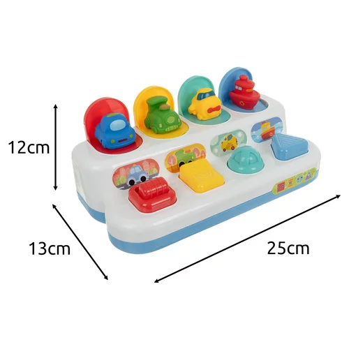 Interaktywna zabawka edukacyjna wspiera rozwój dziecka w zabawny sposób. Naciśnięcie przycisków, dźwigni lub pokręteł powoduje pojawienie się kolorowych pojazdów, co pomaga rozwijać koordynację ręka-oko, małą motorykę oraz logiczne myślenie. Dzięki kompaktowym rozmiarom jest idealna do zabawy w domu i w podróży, a jednocześnie uczy dziecko związku przyczyny i skutku w zabawny sposób.