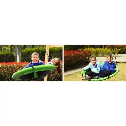 Przestronna i solidna gniazdo bociana zapewnia bezpieczną zabawę dla dzieci i dorosłych oraz wspiera ruch, równowagę i relaks na świeżym powietrzu. Dzięki dużemu okrągłemu siedzisku, nośności 150 kg i wytrzymałym materiałom jest idealnym wyborem na ogród, plac zabaw i taras. Szybki montaż i regulowana długość lin umożliwiają łatwe dostosowanie do wysokości i wieku użytkownika.